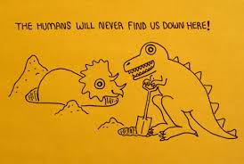 Cartoon about why dinosaurs are under the ground