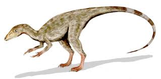 Compsognathus was a chicken-sized theropod dinosaur that lived during the Late Jurassic Period in France and Germany. Cimpsognathus was about 1 meter long and about 3 kilos weight. Its long tail proves that it was a relatively fast runner. Compsognathus was a carnivore (a meat eater) that caught and ate small animals, including insects and lizards. John Ostrom found fossilized remains from a Compsognathus' stomach that contained the skeleton of the fast-running lizard Bavarisaurus.